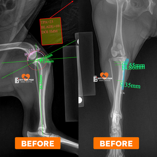 Tại Bệnh viện Thú y Bằng Phạm, các ca phẫu thuật TPLO được lên kế hoạch chính xác bằng phần mềm iBlueVet của BlueSAO – cho phép bác sĩ mô phỏng phẫu thuật trên hình ảnh X-quang trước khi mổ, xác định các thông số tối ưu như TPA, góc xoay, kích thước lưỡi cắt và loại nẹp cố định.